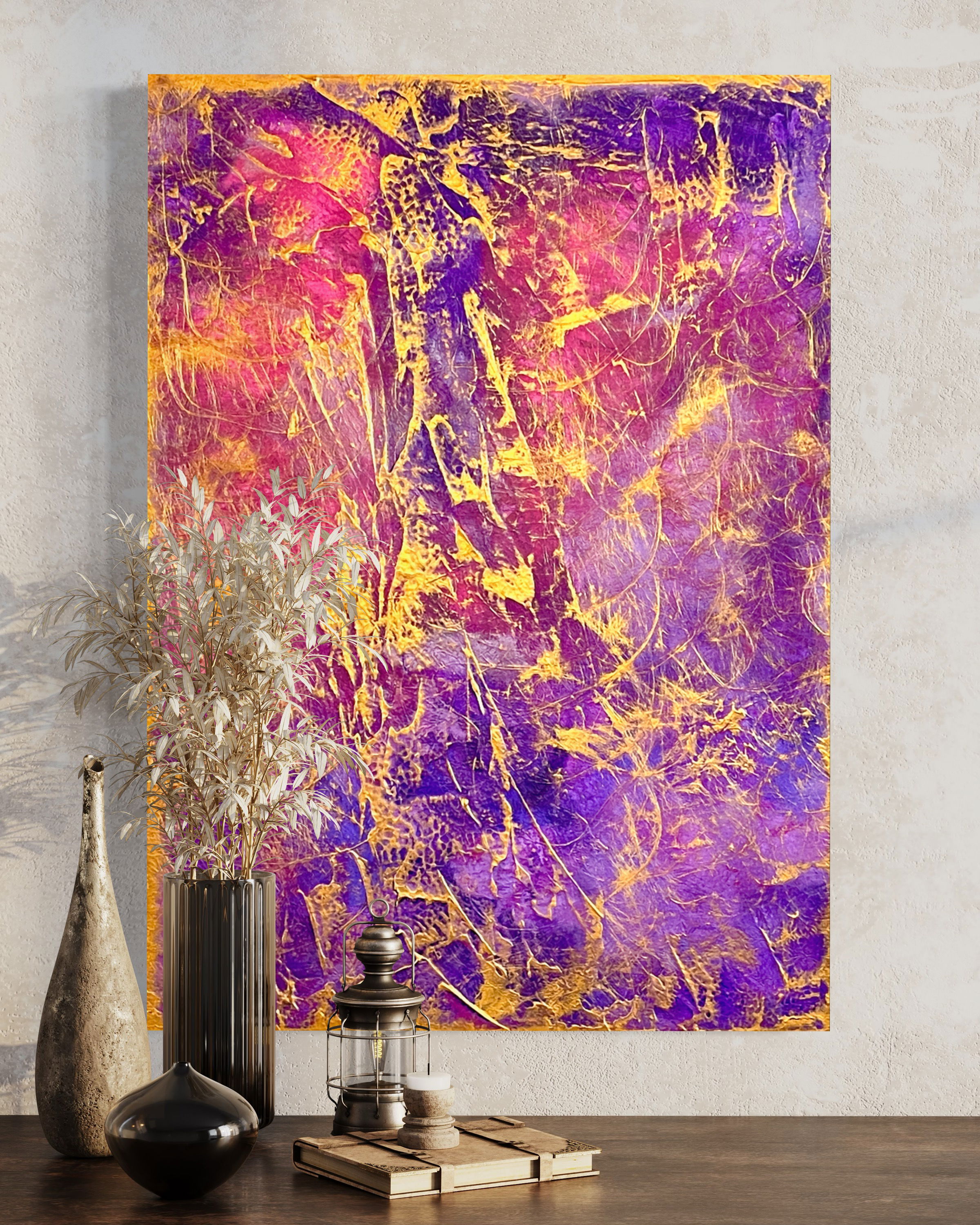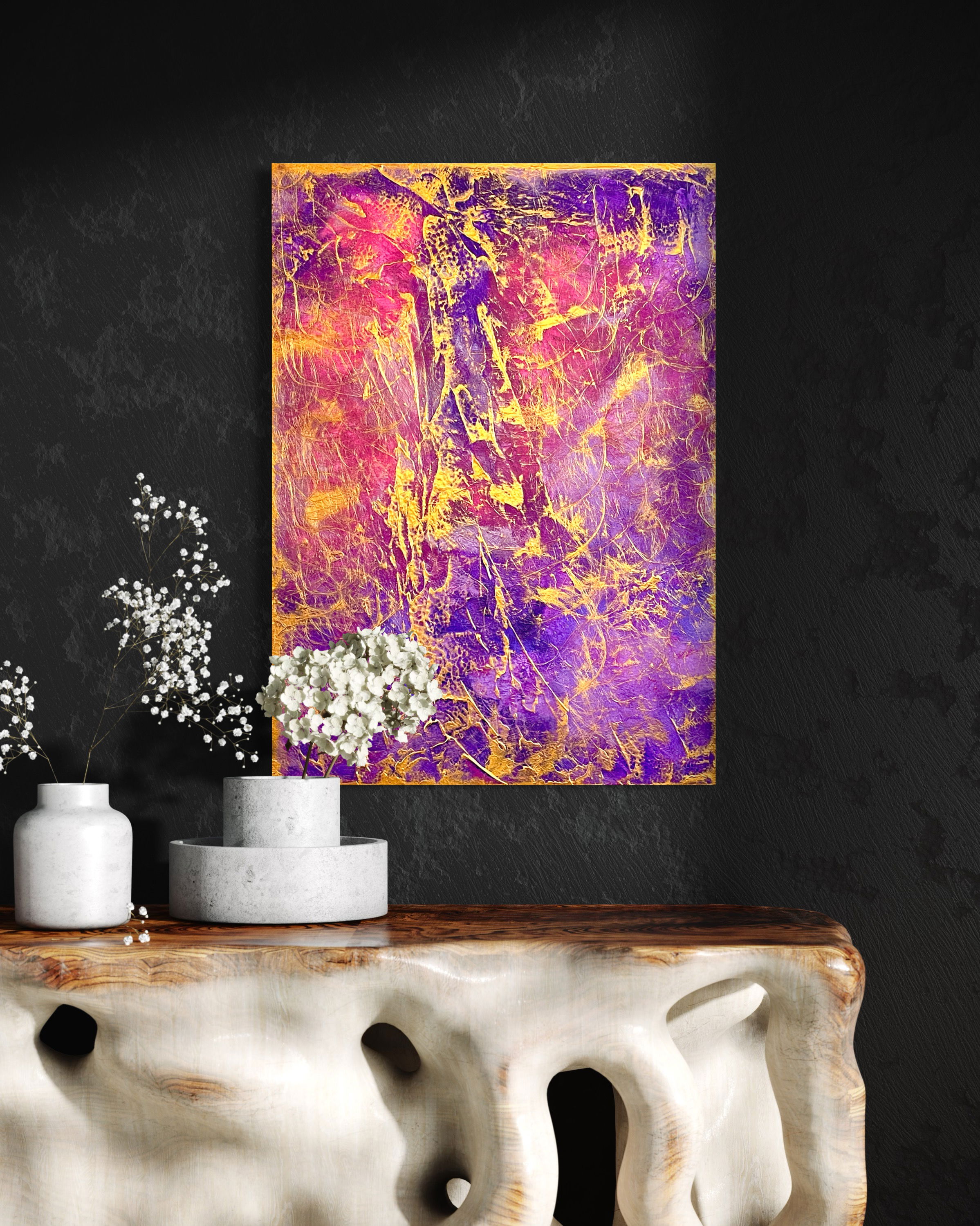 Original Kunstwerk "Purple Love" 70 cm x 50 cm 4 cm tiefe Galerieleinwand mixed media Herstellungsjahr 2022 einzigartige 3 D Struktur Tauche ein, in dieses wundervolle Werk und lass' dich verzaubern. Das Kunstwerk ist signiert und wird mit einem Echtheitszertifikat versandt. Es kann dank angebrachter Aufhängung sofort an die Wand.